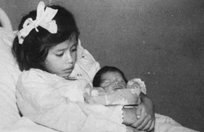 The youngest person to ever give birth was a Peruvian girl, Lina Medina, a Quechua Indian who gave birth to a child in 1939 at age 5. She had precocious puberty and had her first period at age eight months. She may have been raped at a debauched indigenous religious festival where people often brought small children and rapes were known to occur. The man who raped her was never found, and she was silent about how she got pregnant.The delivery was by Caesarean as vaginal delivery was deemed impossible. Her son was told that he was her little brother, and she also treated him in this manner. Obviously, she was an incompetent parent, preferring to play with dolls rather than tend to the baby, but that's to be expected. The case is well documented in medical journals, including photos of her pregnant body. It is also in the Guinness Book.