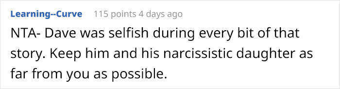 Scroll down for the full story, and be sure to let us know in the comments what you think about the entire drama, dear Pandas. But be warned—the entitlement and rudeness that the boyfriend and his daughter showed is off the charts.