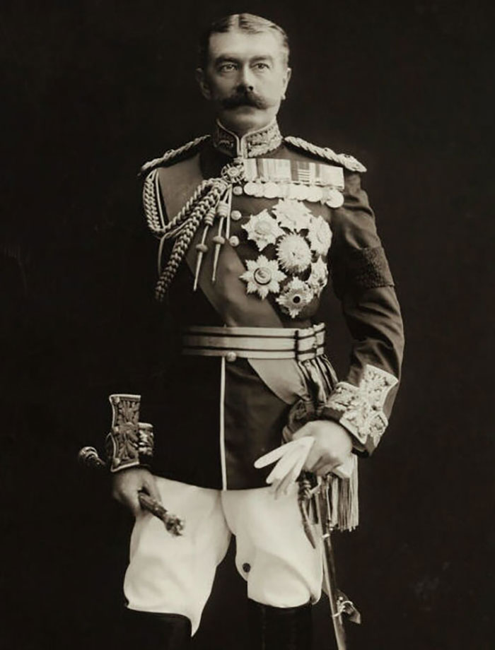 Lord Kitchener (Horacio Herbert Kitchener) Secretary State of War for the British Army. At the onset of WW1, everyone thought the war would end very quickly, either going one way or the other. Kitchener was one of the few people to envision a long war, and to prepare accordingly, even though the British government actively hampered many of his efforts (even though he was a war hero)