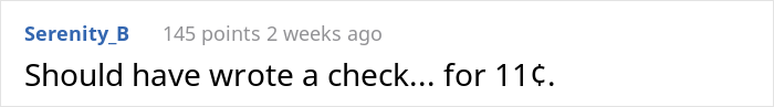 After being stunned that he had to pay 10 cents for having said ‘goodnight’ to his family while away for work, the redditor thought this was the perfect moment to teach corporate a lesson. He made sure that the company would have to pay far more for processing the entire fee by sending in the spare change via letter.