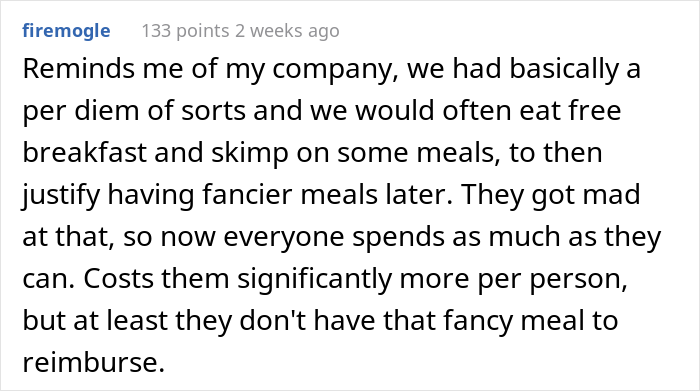 The first call was free while traveling. However, things took a peculiar turn when the OP had to make two calls during his business trip: one to the home office and one to his family. Corporate demanded that he pay up for the additional call. And u/brother_p found the perfect way to do that and change the policy at the same time. Scroll down for the hilarious story, dear Pandas.