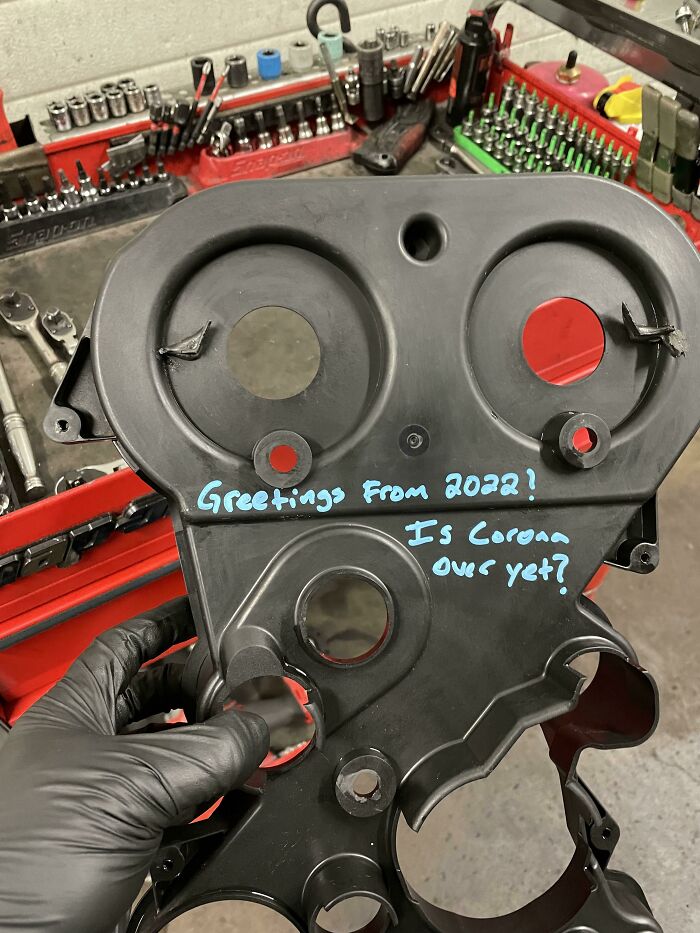 #41 Sticker On The Oil Pan That Scans To A Job Application At Another Shop Lol