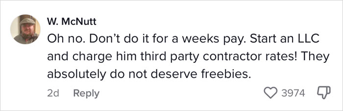 “So he essentially says, ‘you’re not worth a week’s pay. You can do it for me hourly.’ He doesn’t care if I lose my unemployment. So I said, ‘Send me a check for a week’s pay or it’s not getting done.'”