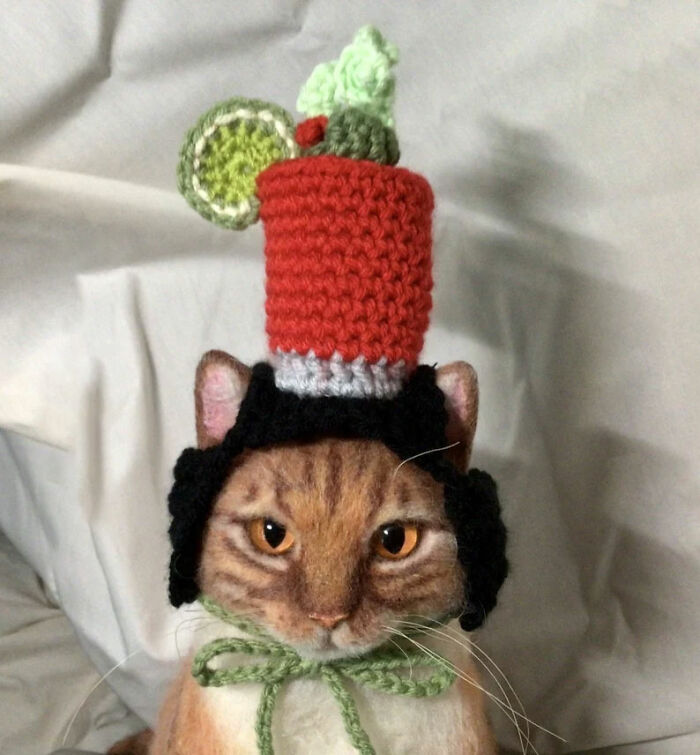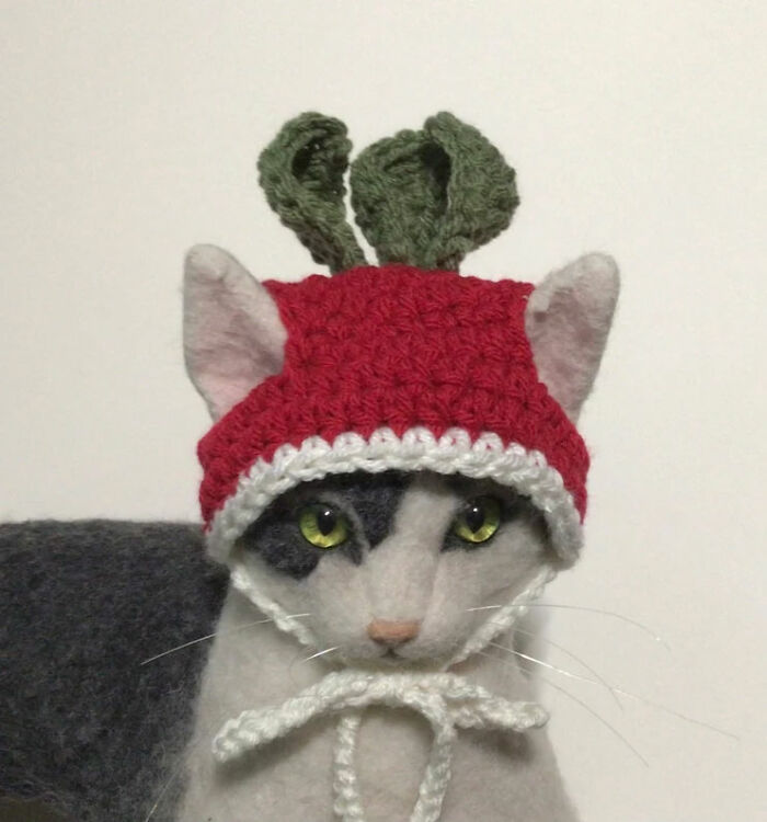 Other than hats ready-to-wear, Patricia offers PDF tutorials for more complicated patterns, which take a lot of time to make but are definitely very satisfying for people who enjoy the process of making this unique outfit for their beloved cats. This way you can dress your pet up in a St Patrick's costume on March 17, Dracula for the next Halloween, or a turkey to celebrate Thanksgiving.
