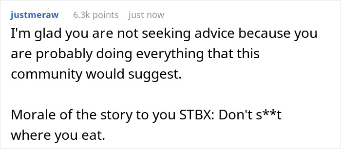 Well, most people in the comments to the original post really supported the author’s decision to part ways with her hapless hubby, while at the same time being outraged by his behavior. Also among the recommendations was a strong advice not to listen to the sister dissuading the OP from legalizing the divorce. In the end, indeed, the woman may well meet someone new in the future.